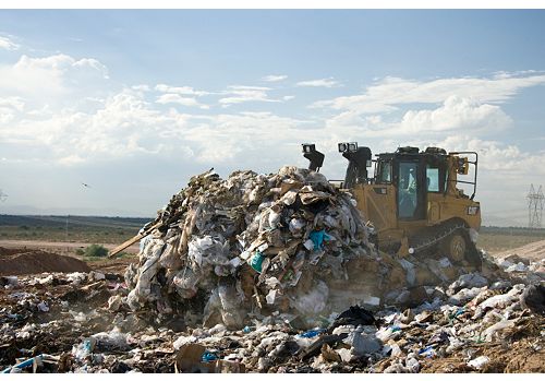 Cat Landfill U-Blades are tall and wide to roll up the maximum amount of trash. Visibility to the front is provided by the open-frame construction of the upper blade; this also keeps blade weight down. While the blade is optimized for loose material, the edge group and moldboard are strong enough to doze cover material or dig trenches when needed.