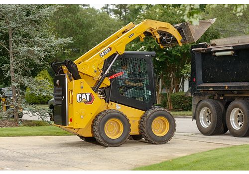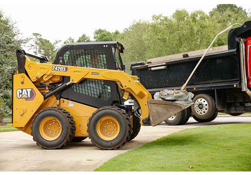 The Cat® 242D3 Skid Steer Loader, with its vertical lift design, delivers extended reach and lift height for quick and easy truck loading. Its stability and lifting performance provides excellent material handling.